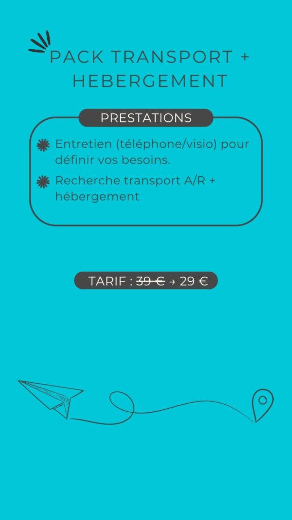 Ce pack comprend la recherche des meilleures offres de vols et d’hébergements, selon vos envies, vos dates et votre budget.