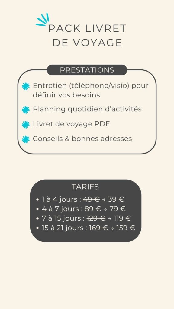 Vous recevez ensuite un livret de voyage PDF complet, regroupant itinéraire, conseils, bonnes adresses et suggestions d’expériences locales.