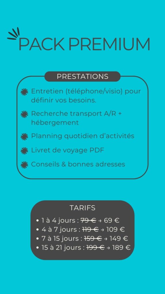 Le Pack Premium est conçu pour celles et ceux qui souhaitent confier entièrement l’organisation de leur voyage.
